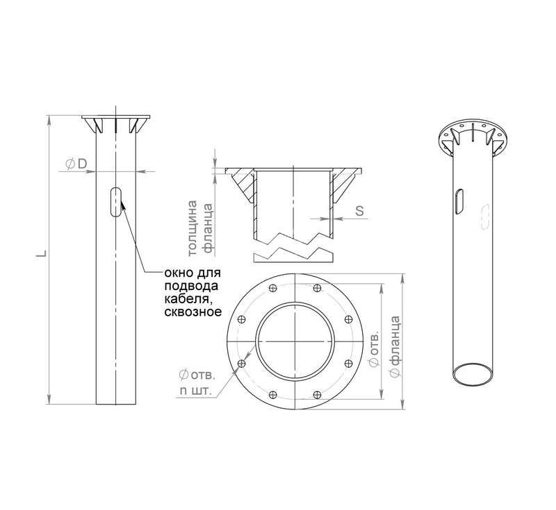 - Способ монтажа: вкапываемый - устанавливается до заливки бетона, фиксируется в опалубке;