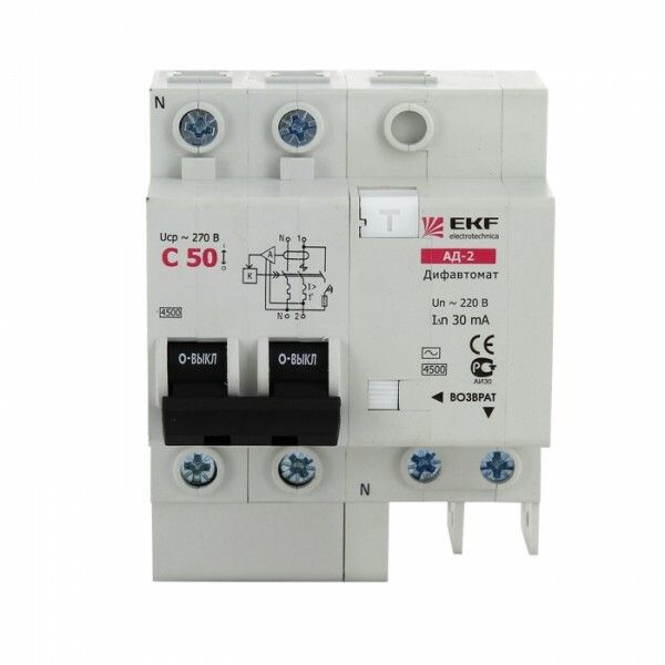Дифференциальный автомат АД-2 16А/30мА (характеристика C, тип AC) 4,5кА EKF | DA2-16-30