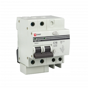 Дифференциальный автомат АД-2 S 50А/100мА (хар. C, AC, электронный, защита 270В) 6кА EKF PROxima - DA2-6-50-100S-pro