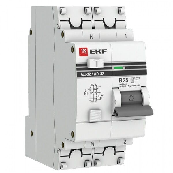 Дифференциальный автомат АД-32 1P+N 25А/ 30А (хар. B, AC, электронный, защита 270В) 4,5кА EKF PROxima - DA32-25-B-30-pro