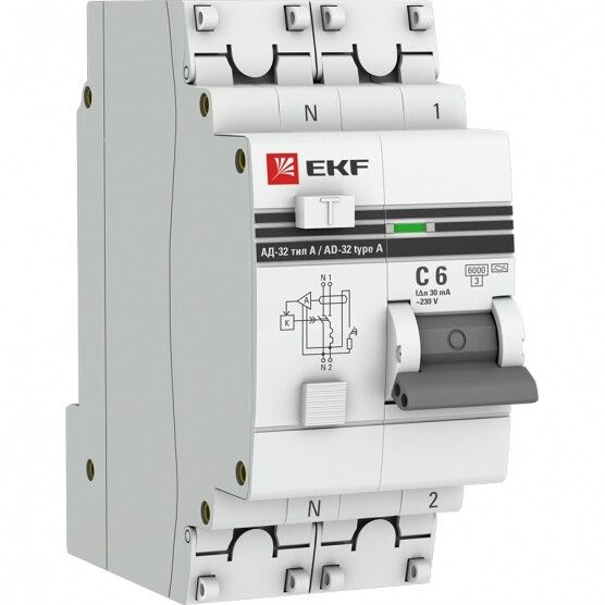 Дифференциальный автомат АД-32 1P+N 6А/30мА (хар. C, A, электронный, защита 270В) 6кА EKF PROxima - DA32-6-6-30-a-pro