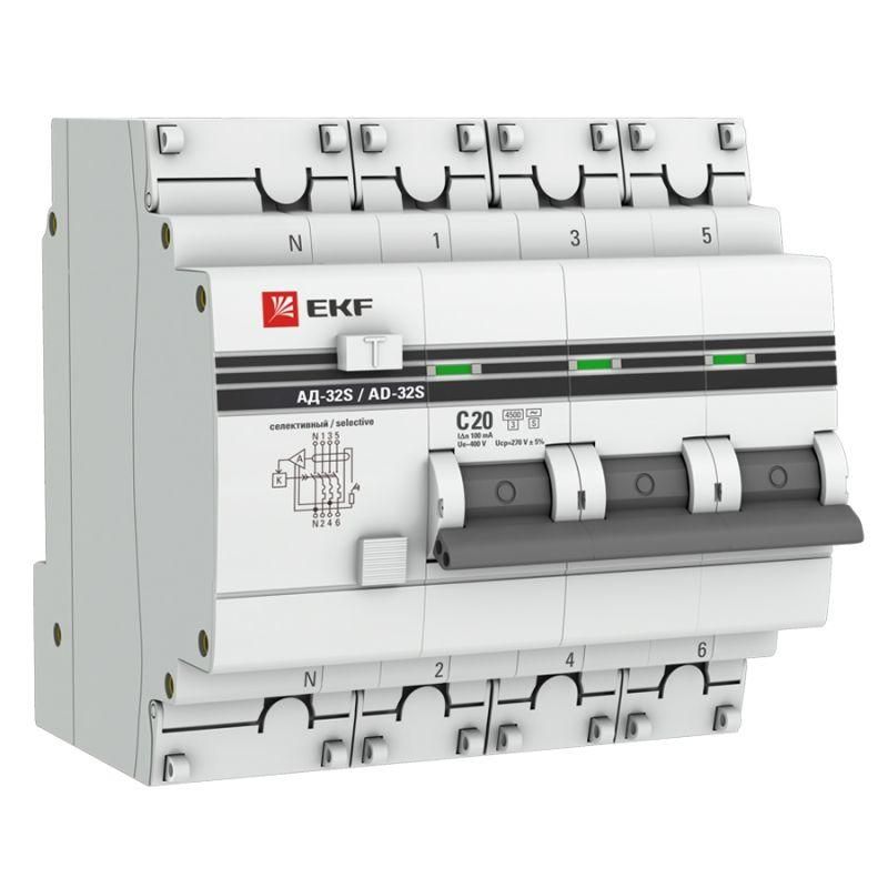 Дифференциальный автомат АД-32 (селективный) 3P+N 20А/100мА EKF PROxima - DA32-20-100S-4P-pro