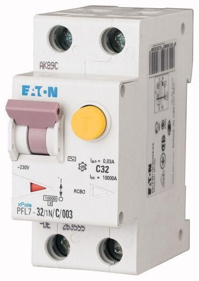 Дифференциальный автоматический выключатель 32/0,03А(AC), кривая отключения С, 1+N полюсов, отключающая способность 10 кА PFL7-32/1N/C/003-DE - 263555 EATON 170801