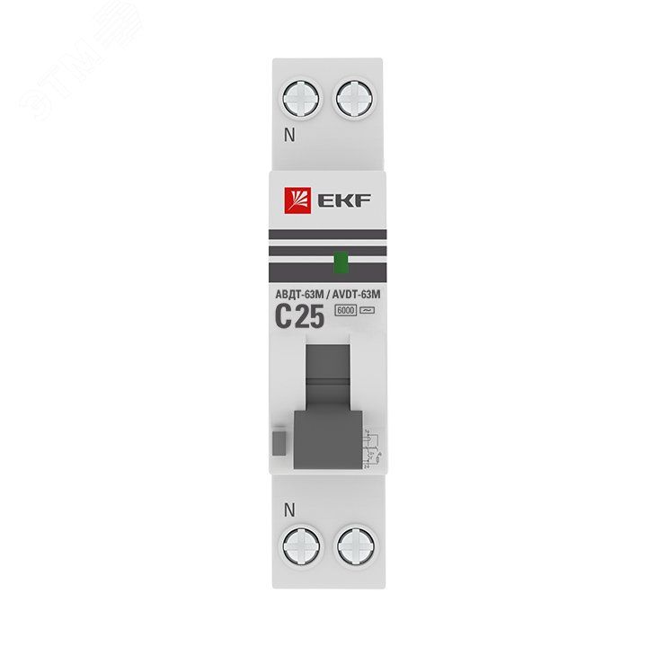 Автоматический выключатель дифференциального тока АВДТ-63М 1п+N 25А C 10мА тип AC электронный 6кА 1 мод от EKF PROxima сочетает функции защиты от перегрузки, короткого замыкания и утечки тока в одном компактном устройстве. Подходит для установки в распределительных щитах жилых и промышленных объектов.