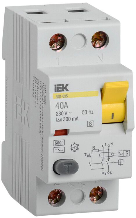 Выключатель дифференциального тока (УЗО) 2 полюса 40А 300мА тип AC/ACS серия ВД1-63S от IEK предназначен для защиты людей и оборудования от поражения электрическим током при утечке тока в цепи. Устройство работает в однофазных и трёхфазных сетях, монтируется на DIN-рейку и применяется в жилых, офисных и промышленных объектах.