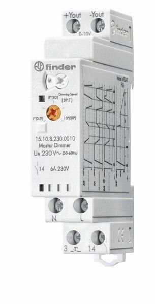 Модульный ведущий электронный диммер (Master); 4 функции; сигнал 0-10В; подключение до 32 ведомых диммеров (Slave) | 151082300010 Finder 15.10.8.230.0010