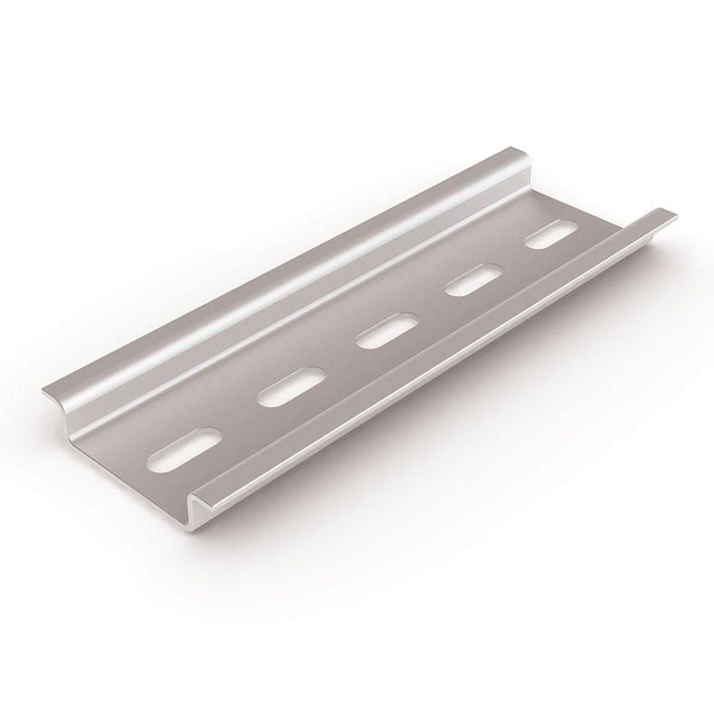 Рейка совместима со всеми устройствами, имеющими стандартизированное крепление типа DIN 35/7.5. Для установки её фиксируют саморезами или болтами через отверстия в основание щита. Отступ от края профиля до первого отверстия составляет 30 мм - важно соблюдать этот размер при сверлении. Монтаж выполняется перпендикулярно плоскости щита; рекомендуется использовать два крепления - на расстоянии 300–500 мм друг от друга для предотвращения прогиба.