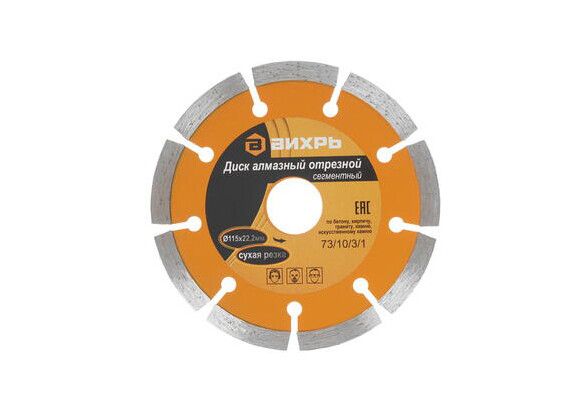 Диск алмазный отрезной сегментный 115х22,2 мм,сухая резка | 73/10/3/1 ВИХРЬ
