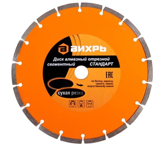 Диск алмазный отрезной сегментный СТАНДАРТ, 180 х 22,2 мм, сухая резка | 73/10/3/15 ВИХРЬ