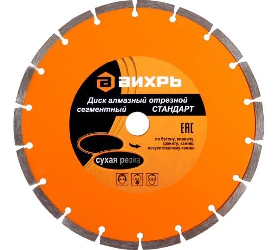 Диск алмазный отрезной сегментный СТАНДАРТ, 230 х 22,2 мм, сухая резка | 73/10/3/16 ВИХРЬ