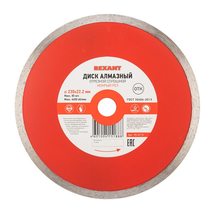 | Диск алмазный отрезной сплошной 230x22.2x2.4x10 мм, REXANT - 90-0115 | 28.02.2026 | Под заказ | 459,61 ₽ | шт. | от 30 дней |