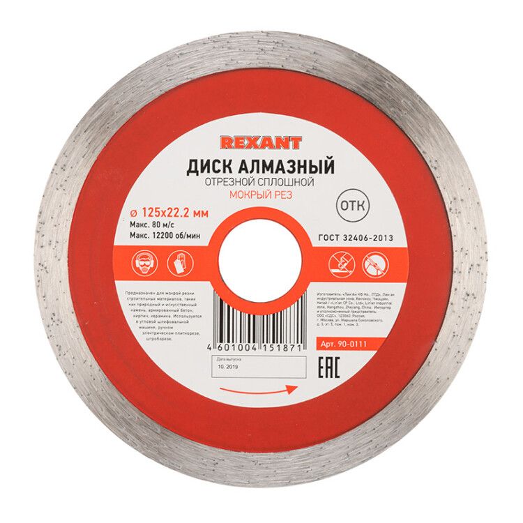 | Диск отрезной алмазный сплошной 125х22.2мм Rexant 90-0111 | 26.02.2026 | Под заказ | 275,08 ₽ | шт. | от 30 дней |