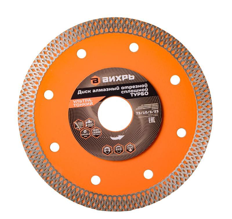 Диск алмазный сплошной тонкий 125х22.2мм сухая и влажная резка Вихрь 73/10/3/23