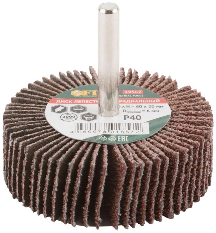 Диск лепестковый для дрели радиальный, 60 х 20 6 мм (P40) - 39562 FIT - надежный и удобный инструмент, который поможет вам достичь высокого качества обработки деталей и конструкций.