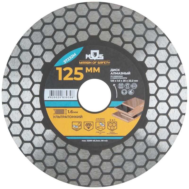 Диск отрезной алмазный по керамике и керамограниту 125х1.6х25х22.2мм MOS 37232М