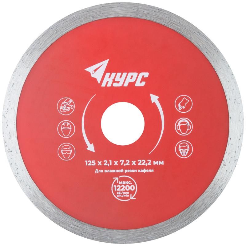 Диск отрезной алмазный сплошной по кафелю 125х2.1х7.2х22.2мм влажная резка КУРС 37252