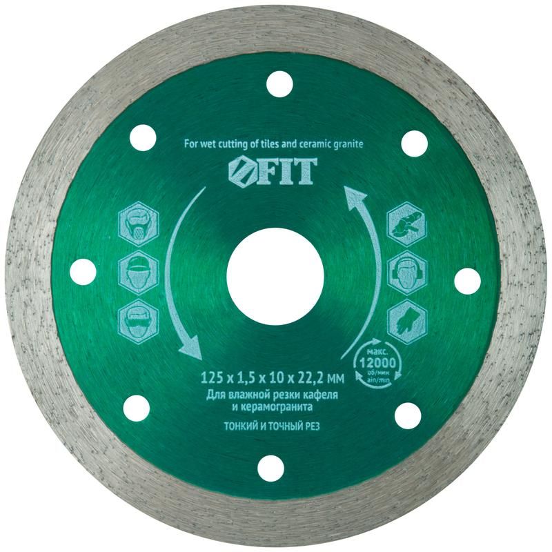 Диск отрезной алмазный сплошной (влажная резка), предназначен для работы с кафелем и керамогранитом. Его диаметр составляет 125 мм, а толщина всего 1.5 мм, что делает его идеальным для точной и аккуратной резки. Посадочный размер диска составляет 22.2 мм, что позволяет использовать его с различными углошлифовальными машинами.