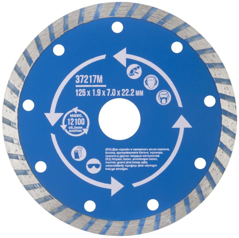 Диск отрезной алмазный Турбо 125х1.9х7х22.2мм сухая и влажная резка MOS 37217М