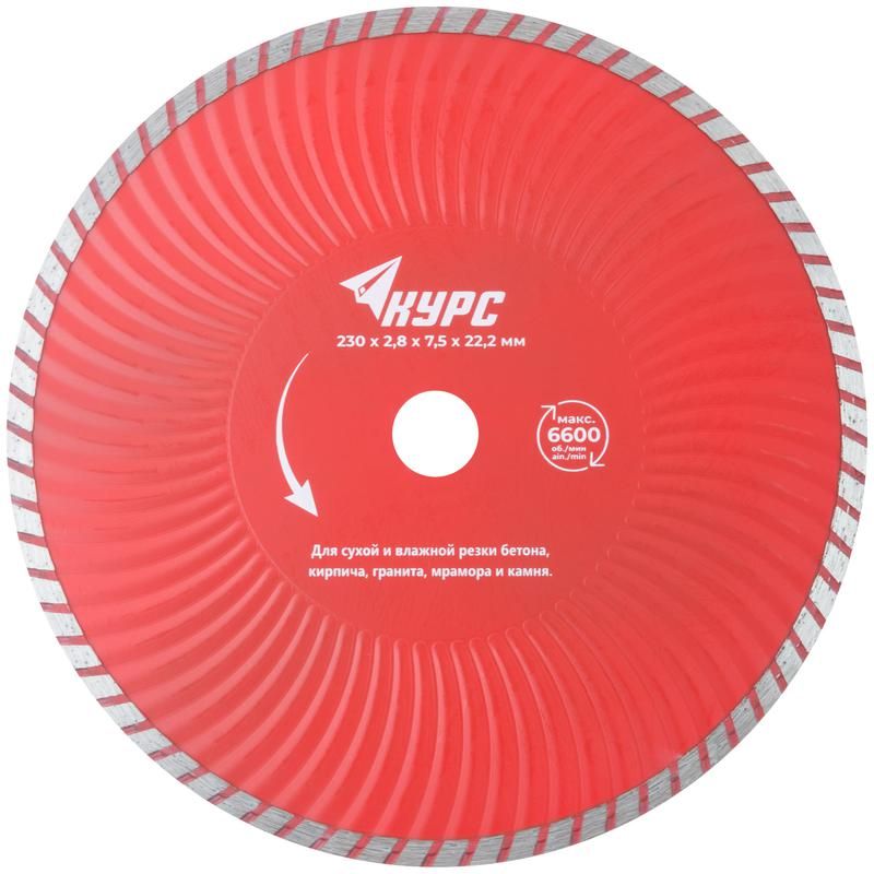 Диск отрезной алмазный Турбо-волна 230х2.8х7.5х22.2мм сухая и влажная резка КУРС 37275