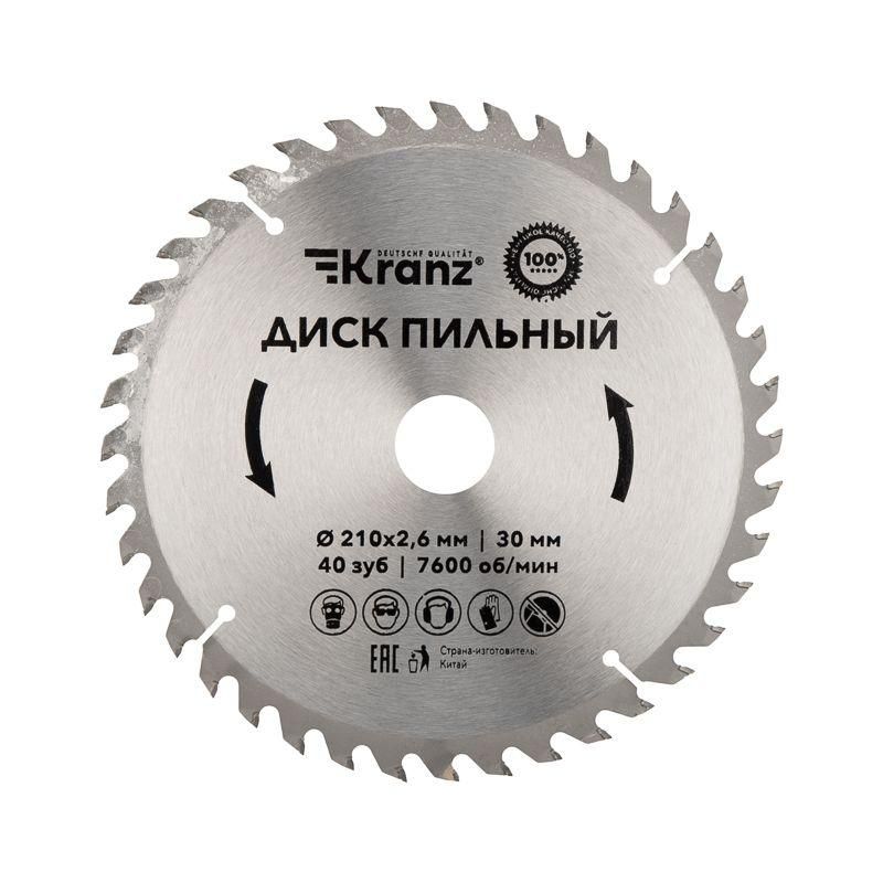 Диск пильный 210 мм x 40 зубьев x 30 мм от бренда Kranz (арт. kr-92-0122) - универсальный режущий инструмент для точного распила древесины, ДСП, МДФ, а также мягких металлов и пластиков. Подходит для профессионального использования на циркулярных и торцовочных пилах.