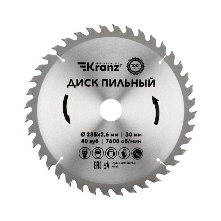 Диск пильный 235 мм x 40 зубьев x 30 мм от бренда Kranz (арт. kr-92-0124) - универсальный режущий элемент для точного распила древесины, ДСП, МДФ, пластика и алюминия. Подходит для профессионального использования на циркулярных и торцовочных пилах.