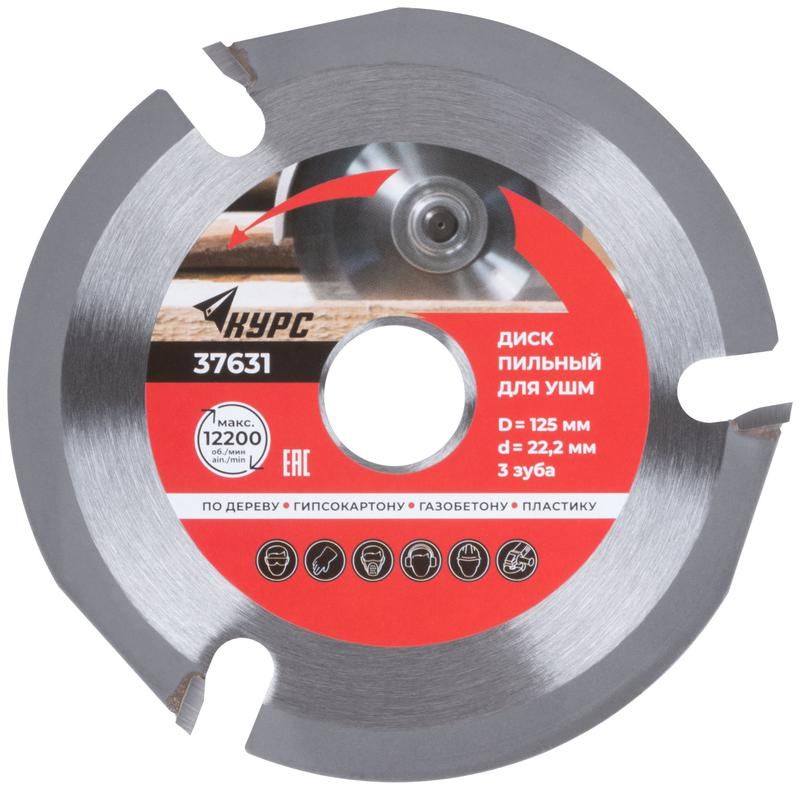 Диск пильный по дереву 125мм посадочный диаметр 22.2мм 3зуб. с карбидными вставками КУРС 37631