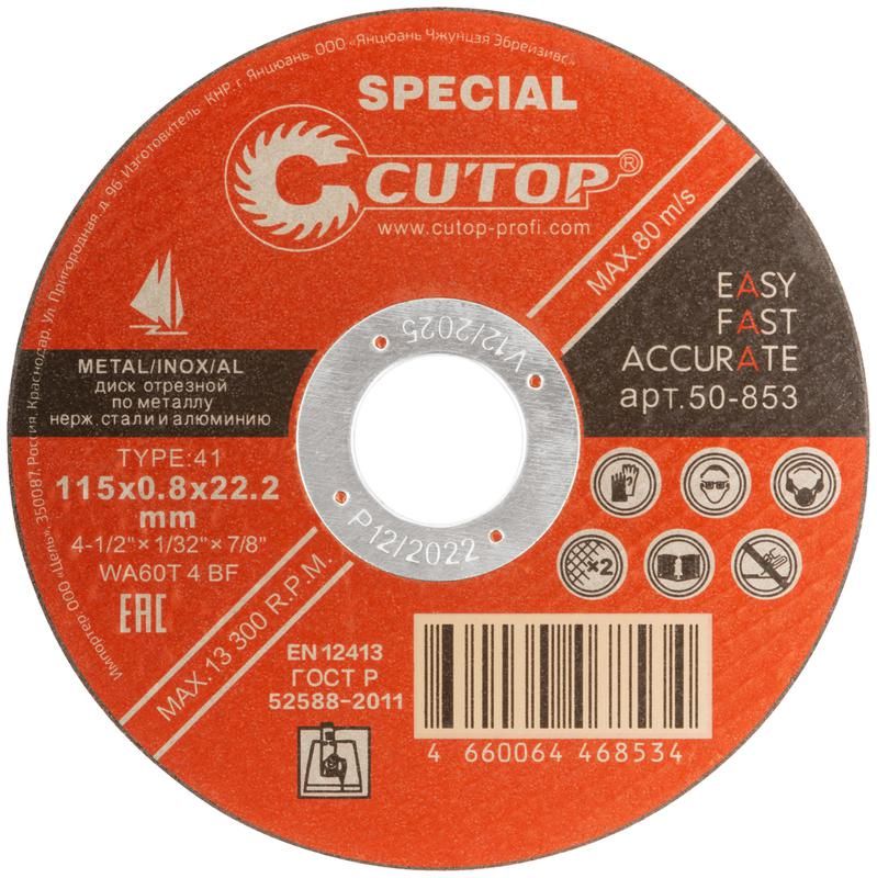 | Диск профессиональный специальный отрезной по металлу, нержавеющей стали и алюминию Cutop Special, Т41-115x0,8x22,2 мм - 50-853 | 25.02.2026 | 955 шт. | 69,02 ₽ | шт. | от 30 дней |