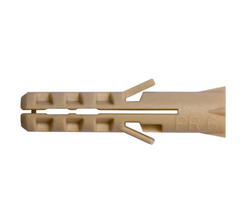 Дюбель распорный нейлоновый PR 6х30 предназначен для крепления предметов к стеновым материалам, которые плохо держат обычные анкеры - например, к ячеистому бетону, пустотелому кирпичу, гипсовым плитам и другим мягким основаниям. Он обеспечивает равномерное распределение нагрузки за счет расширения внутри отверстия. Подходит для установки светильников, кронштейнов, трубопроводов, перегородок и других легких конструкций.