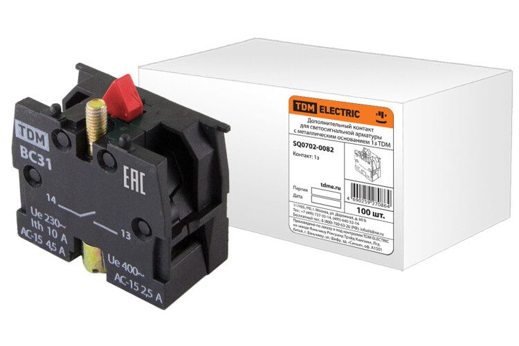 Дополнительный контакт для светосигнального арматурного реле с металлическим основанием 1з (1НО) от TDM ELECTRIC (артикул sq0702-0082) предназначен для расширения функционала реле за счёт добавления одного замыкающего контакта - удобное решение для сборки управляющих и сигнальных цепей в промышленных щитах.