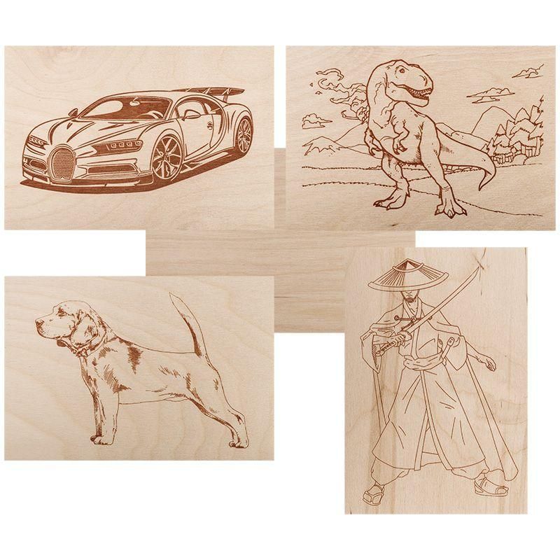 Доски для выжигания "Набор №1" (воин/динозавр/собака/машина/без рисунка) 148х210мм (А5) 5шт Rexant 12-0936 MEET