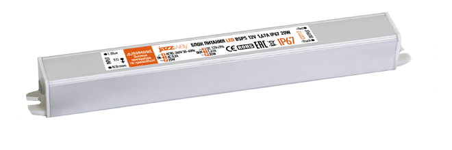 Драйвер для светодиодной ленты LED BSPS 12V1,67A=20W (new) влагозащищенный IP67 | 3329242А Jazzway .3329242A