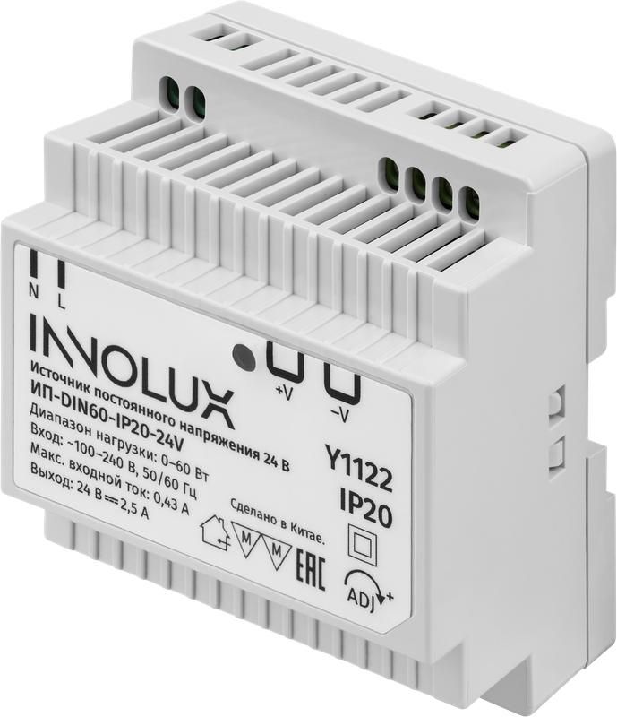 - Артикул 97439 и модель ИП-DIN60-IP20-24V 24V от Innolux подходят для замены аналогов серии ИП-IP20DIN - проверьте соответствие клемм и габаритов