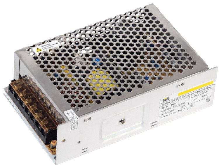 Драйвер светодиодный ИПСН-PRO 200Вт 12В IP20 с блок-клеммами от IEK предназначен для стабильного питания светодиодной ленты от сети 220 В. Этот драйвер обеспечивает выходное напряжение 12 В постоянного тока, что соответствует требованиям большинства светодиодных лент. Артикул lsp1-200-12-20-33-pro относится к серии LIGHTING и рассчитан на длительную работу в бытовых и коммерческих системах подсветки.