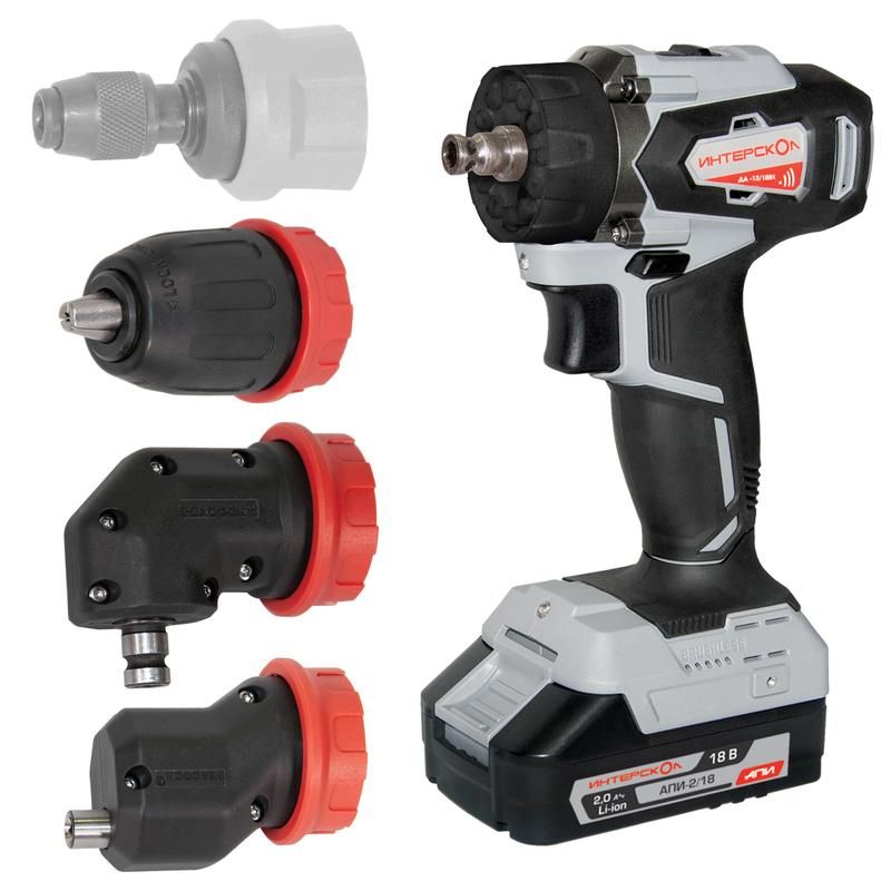 Шуруповерт аккумуляторный бесщеточный ДА-13/18ВК 45 комби АПИ (Li-ion, кейс, 2 аккум., 2Ач, 3 насадки), - 575.2.2.78 Интерскол