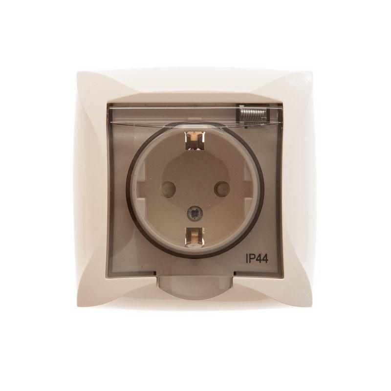 Розетка 1-м СП Дуэт 16А IP44 с заземл. защ. шторки крышкой беж. SchE WDE000248 APC