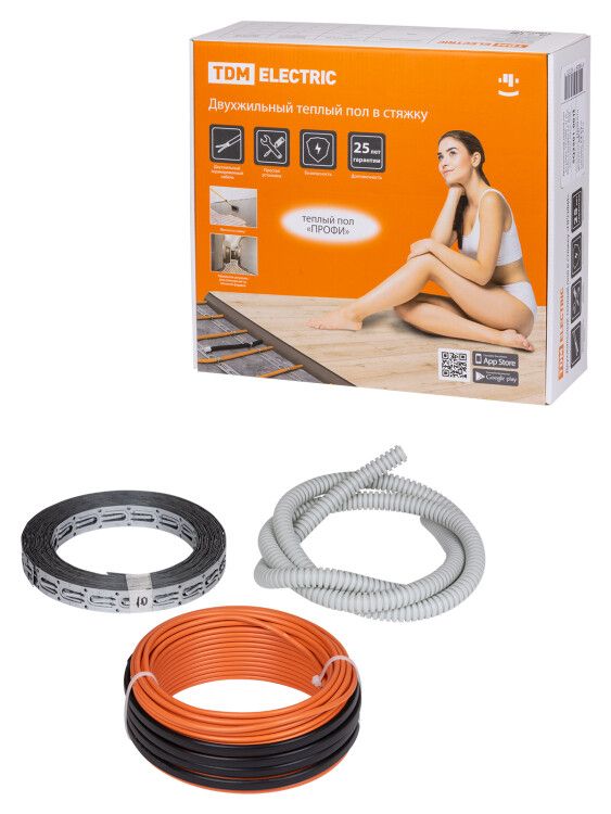 Двухжильный теплый пол в стяжку "ПРОФИ", 11 м, 200 Вт, S укладки 1,1-1,7 м², монтажная лента, | SQ2501-0013 TDM