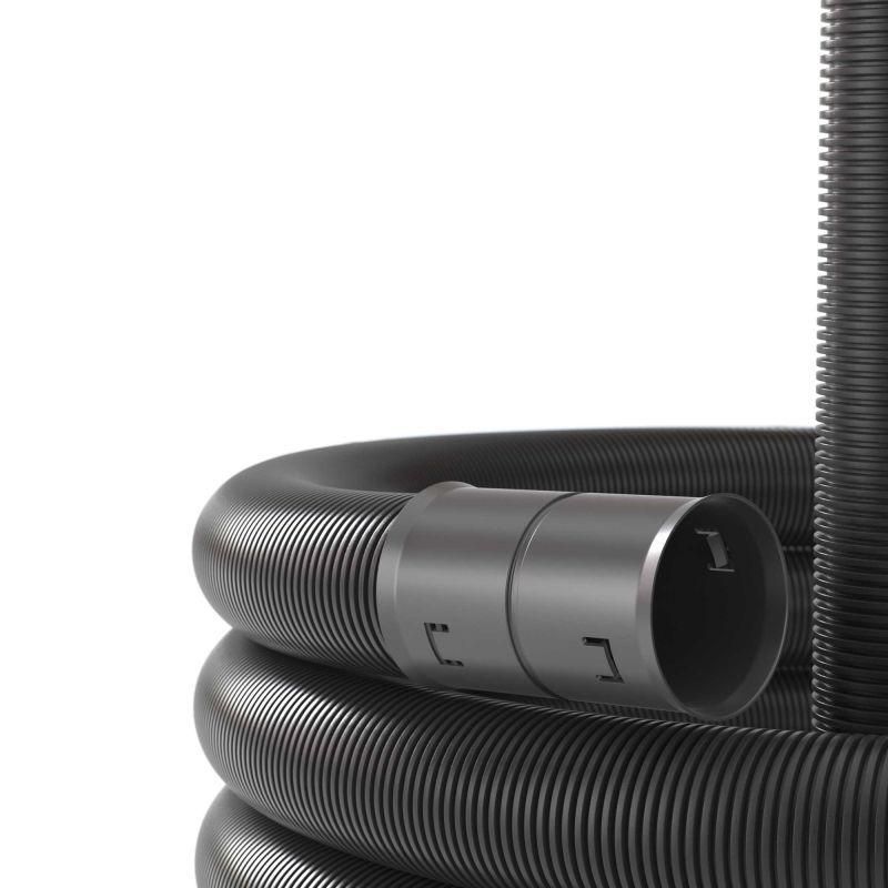Двустенная труба ПНД гибкая для открытой прокладки д.40мм, SN23, 450Н, ПВ-0, УФ, с протяжкой, в бухте 50м, цвет черный | 151940 DKC ДКС