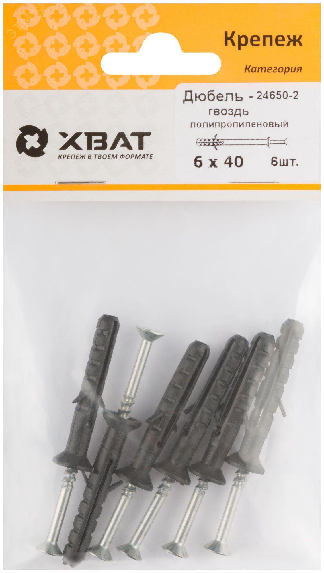 | Дюбель-гвоздь 6х40 потайной бортик, полипропилен (6шт) - 24650-2 | 19.02.2026 | 3 уп. | 35,75 ₽ | уп. | от 1 дня |