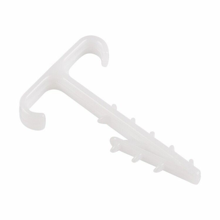 Дюбель-хомут нейлоновый Т-образный для двух плоских кабелей 2х12 мм, белый, упаковка 100 шт, КФ устанавливается в просверленное отверстие диаметром 8–9 мм. Шипы «елочка» обеспечивают плотную посадку за счёт расклинивания в материале основания. Для правильной фиксации важно: