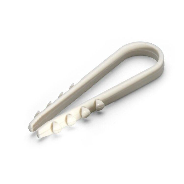 Дюбель-хомут ДХ 11-18 совместим с любыми круглыми кабелями и трубами диаметром до 15 мм. Для монтажа требуется просверлить отверстие диаметром 11–12 мм в бетоне или кирпиче. Хомут вставляется в отверстие до упора - фиксация происходит за счёт расширения внутреннего механизма. После установки кабель помещается в канал хомута и затягивается рукой - дополнительных инструментов не требуется. Подходит для работы в труднодоступных местах благодаря компактному дизайну.