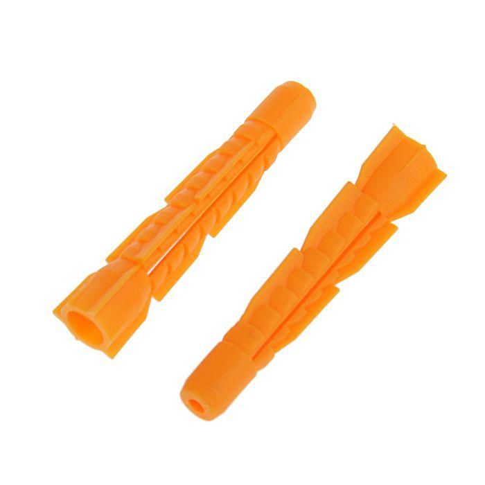 Дюбель универсальный 8х52 без бортика совместим с любыми шурупами, имеющими шестигранную головку - включая универсальные шурупы, сантехнические болты и шпильки-шурупы. Диаметр сверла для отверстия - 8 мм. Установка выполняется в просверленное отверстие до упора, после чего шуруп заворачивается - он сам вызывает расширение стенок дюбеля, создавая плотный «якорь» внутри материала. Острые зубцы на распорной части препятствуют проворачиванию во время затяжки.