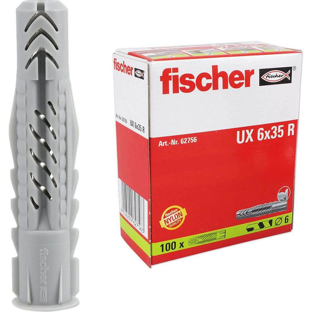 Дюбель универсальный с буртом UX 6х35 R нейлоновый - 577286 Fisher 62756