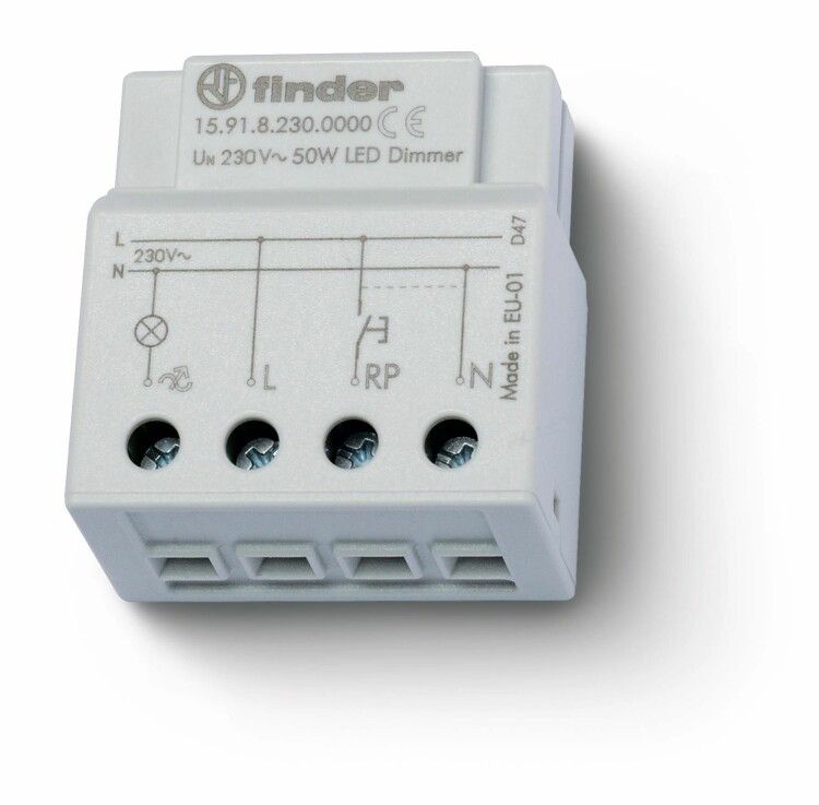 Электронный диммер для светодиодных ламп; 50Вт; плавное диммирование; питание 230В АC; монтаж в коробке | 159182300000 Finder 15.91.8.230.0000
