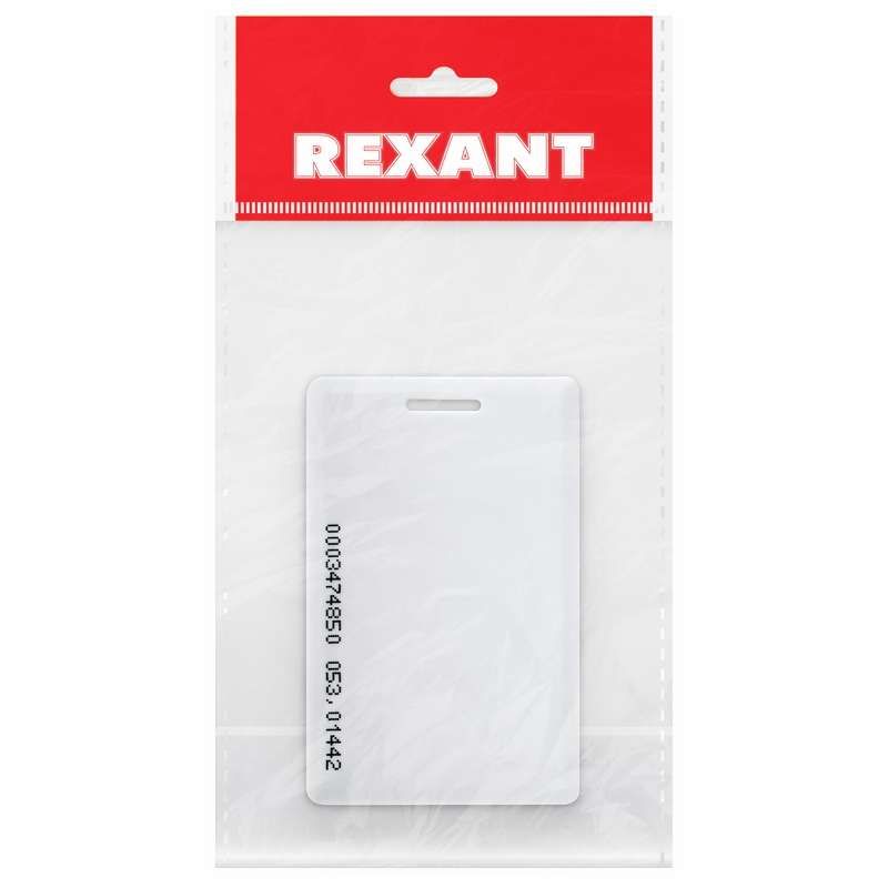 Электронный ключ карта с прорезью 125KHz формат EM от Rexant (артикулы etm46-0227-1 и 46-0227-1) - это бесконтактная идентификаторная карта, предназначенная для работы в системах контроля доступа. Карта легко помещается в кошелёк, устойчива к механическому воздействию и совместима со всеми популярными считывателями на частоте 125 КГц.