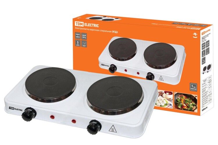 Электроплитка двухконфорочная ЭПД2 230 В, 2х1 кВт, диск, белая SQ2504-0004 TDM ELECTRIC - это легкая и мобильная плитка, которая идеально подходит для приготовления пищи в местах, где установка обычных плит невозможна. Она оснащена несколькими уровнями мощности, что позволяет готовить разные типы блюд.