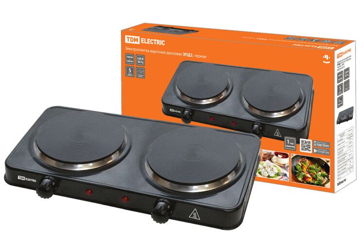 Электроплитка двухконф. ЭПД2 230 В, 2х1 кВт, диск, черная, | SQ2504-0010 TDM