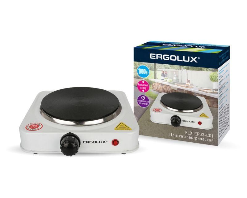 Электроплитка ELX-EP03-C01 1 конф. дисковый нагр. эл. 1000Вт 220-240В бел. Ergolux 13438 Camelion