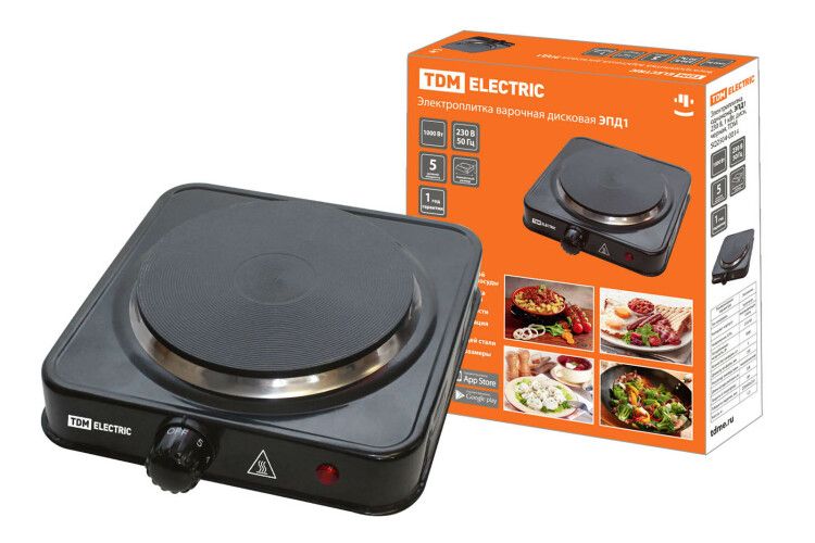 Электроплитка одноконф. ЭПД1 230 В, 1 кВт, диск, черная, | SQ2504-0014 TDM