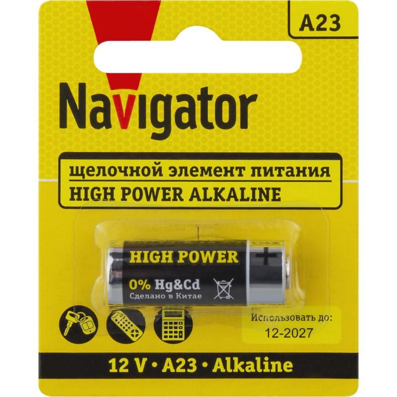 Элемент питания алкалиновый A23 93 829 NBT-NE-A23-BP1 для пультов сигнализаций (блист.1шт) NAVIGATOR 93829