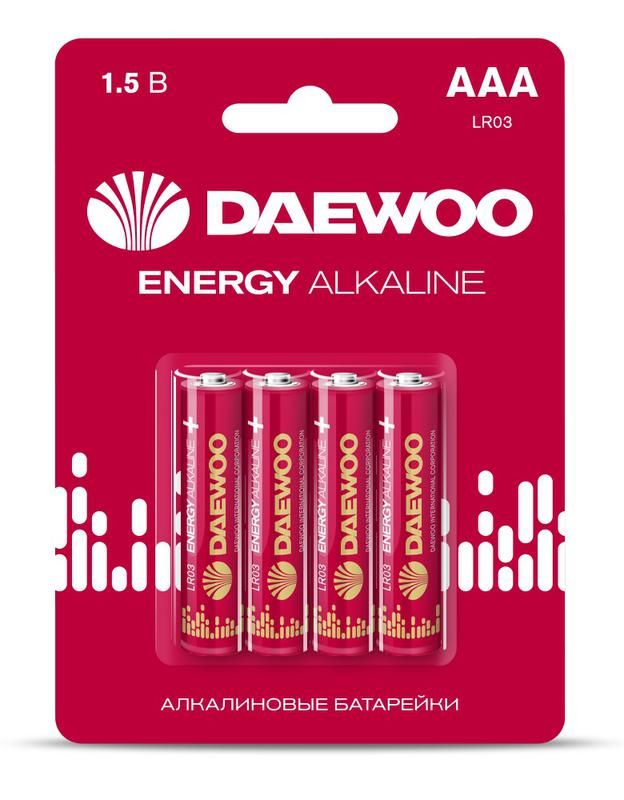 Элемент питания алкалиновый AAA/LR03 1.5В (упаковка 4 шт) от Daewoo - это надёжный одноразовый источник тока для устройств со средним и высоким потреблением энергии. Артикул 5029903 соответствует стандартному типоразмеру LR03, обеспечивая совместимость с широким спектром бытовой электроники.